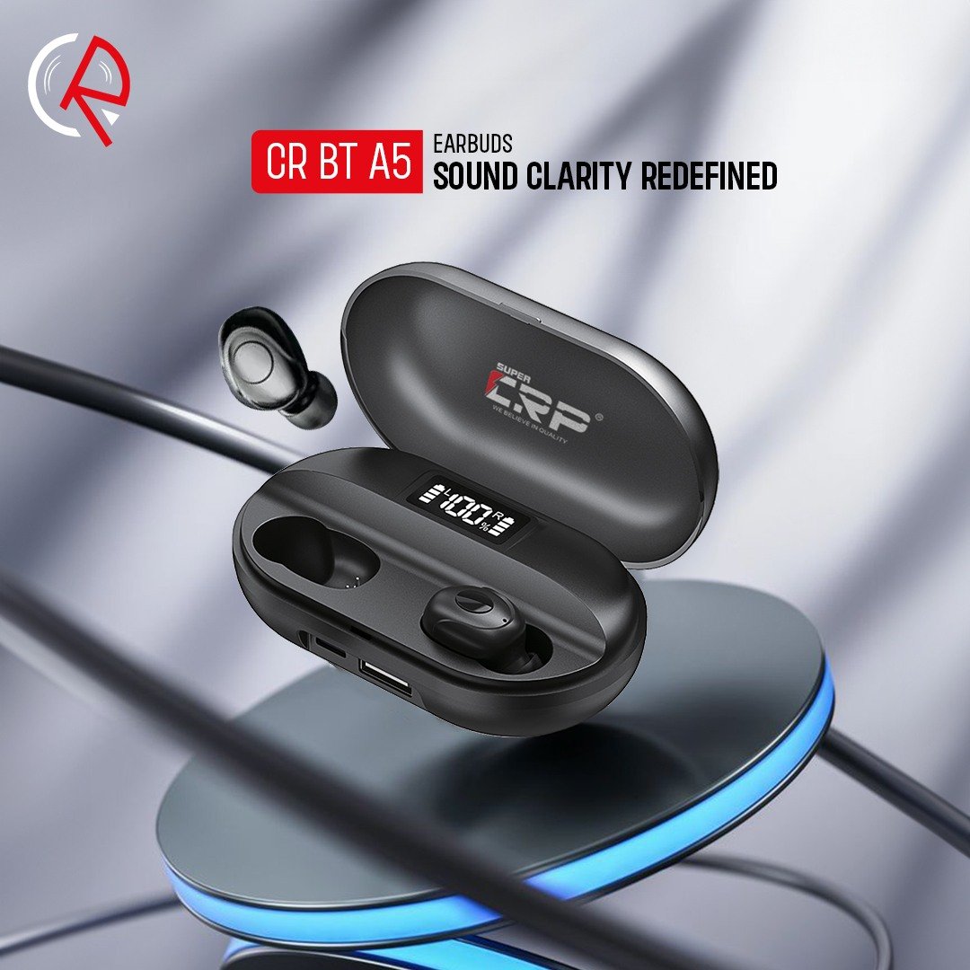 CR BT-A5 ALPHA Pro level TWS - Wireless Earbuds Indulge in the immersive sound of CR BT-475 Pro level TWS powered by CRP Signature Sound and 12mm Bass sound drivers. With our Advo-TWS Technology enjoy uninterrupted calling, getting rid of the background noise in a meeting. Never stop groovin’ to your favourite tracks and It offers a seamless user experience via its capacitive touch controls.