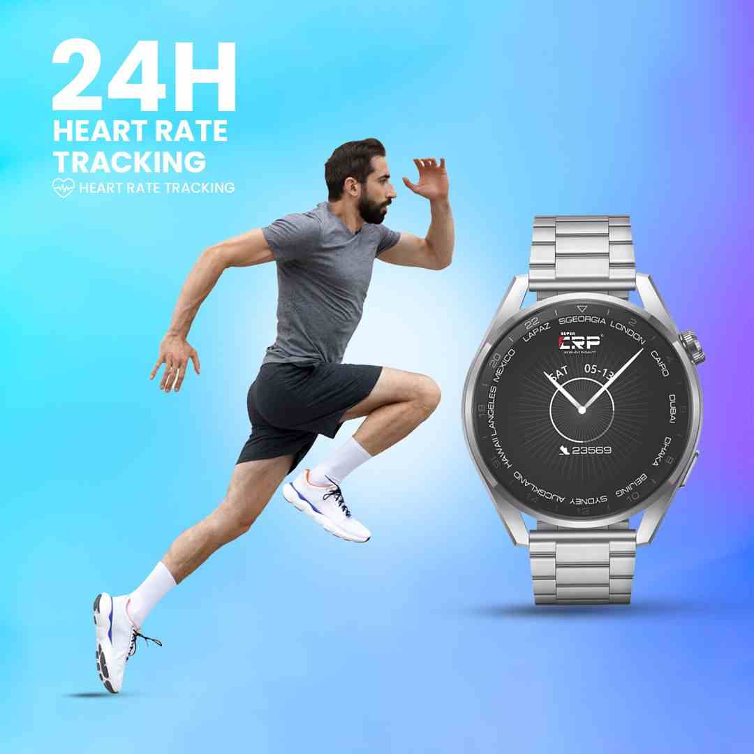 When we Imagine a smartwatch, we think smart performance, Notification alerts, and style that makes you a better Personality. Presenting, Super CRP W-1125 Smart Watch - a feature-packed smartwatch for all you Rebels who seek to watch your game. Round Dial and Curved Glass for wider look and infographics. Keep a tab on your Workout on the go with its Real-Time Monitoring.It has metal belt. No matter what sport is your game, this watch is all you need to analyze your performance with its multiple Sports Mode. Never miss a beat with its call, text and social media notifications, delivered straight to your wrist. Its IP68 Sweat and Dust Resistance makes it just the fitness partner you need. Get multiple watch faces to express your style too. Make sure you Watch Your Game with Super CRP W-1125 Smart Watch.